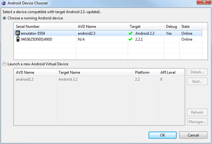 Select a preferred Android Device. Then click OK.