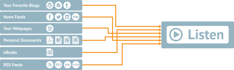 Simply cut and paste the text you wish to convert to speech into our text box and click convert text. Or, upload any supported document, website, blog, etc, and click convert file or listen button.